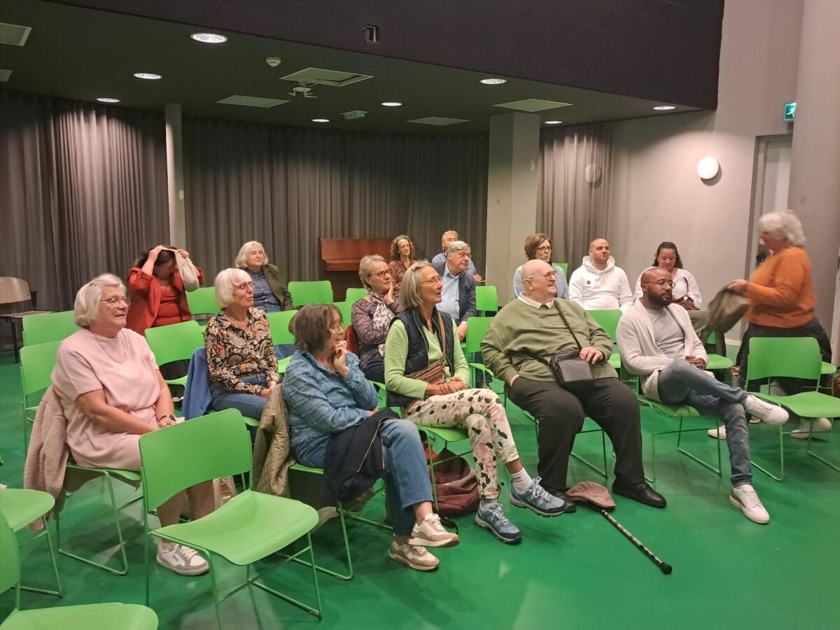 Peter en zijn groep bekeken de film tijdens een van hun bijeenkomsten bij Cpunt in Hoofddorp, op een groot scherm.